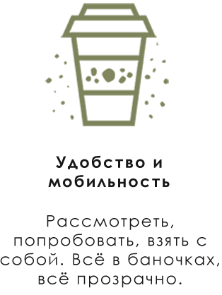 Любой напиток можно взять с собой в удобной закрытой упаковке и пить на ходу.