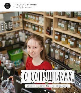 Цель The Spiceroom — объединить людей с самыми разными гастро-привычками и жизненными взглядами. Стать уютным местом, где можно пересечься с друзьями, пообщаться, выпить эспрессо и купить пряностей для семейного ужина.